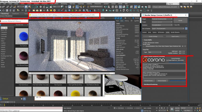 - Полная интеграция: Corona встроена в интерфейс 3ds Max и легко взаимодействует с его объектами, камерами, источниками света и т. д.